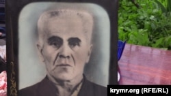 На столике разложены фотографии из семейного архива, в центре установлен портрет отца Азиме – Сейтхалила. Вспоминает свою бабушку, не пережившую невыносимую дорогу в вагонах для скота, в которых перевозили крымских татар.