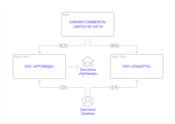 После аннексии Крыма отель перерегистрировался в российском госреестре юрлиц как ООО «Артемида». Его главный основатель, согласно реестру, ‒ кипрская компания Dabarin Commercial Limited, а Светлане Синенко принадлежит лишь 1,3%. Кроме того, эта же кипрская фирма и Светлана Синенко (0,1%) обладают еще одной базой отдыха в Крыму ‒ ООО «Альберта». Она состоит из десятка временных летних домиков для туристов в Алупке.